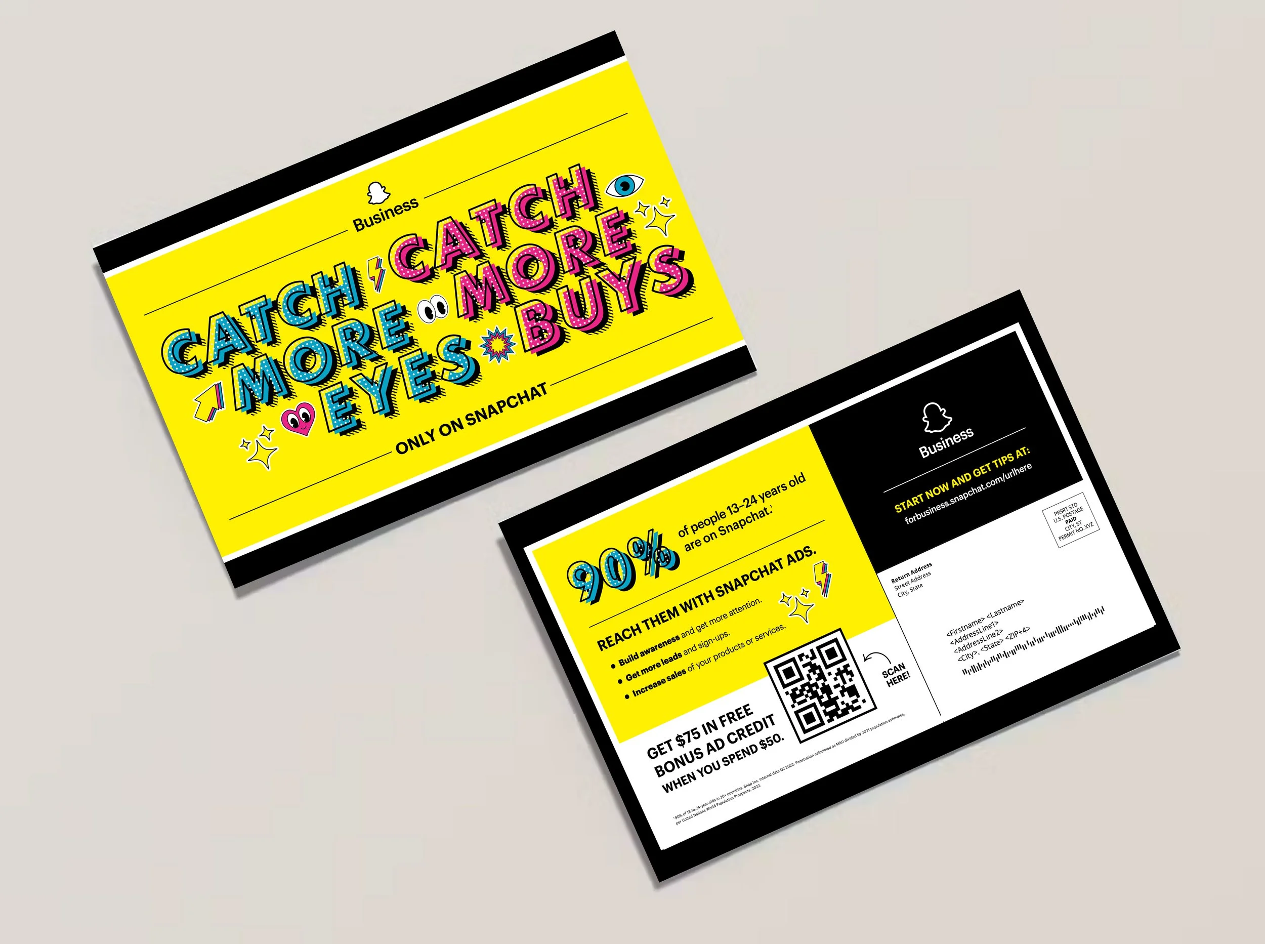 Art directed this Snapchat ad campaign to run across social media channels in various size formats + motion and static versions for the US, MENA, and EU regions. Featured here is the US messaging.